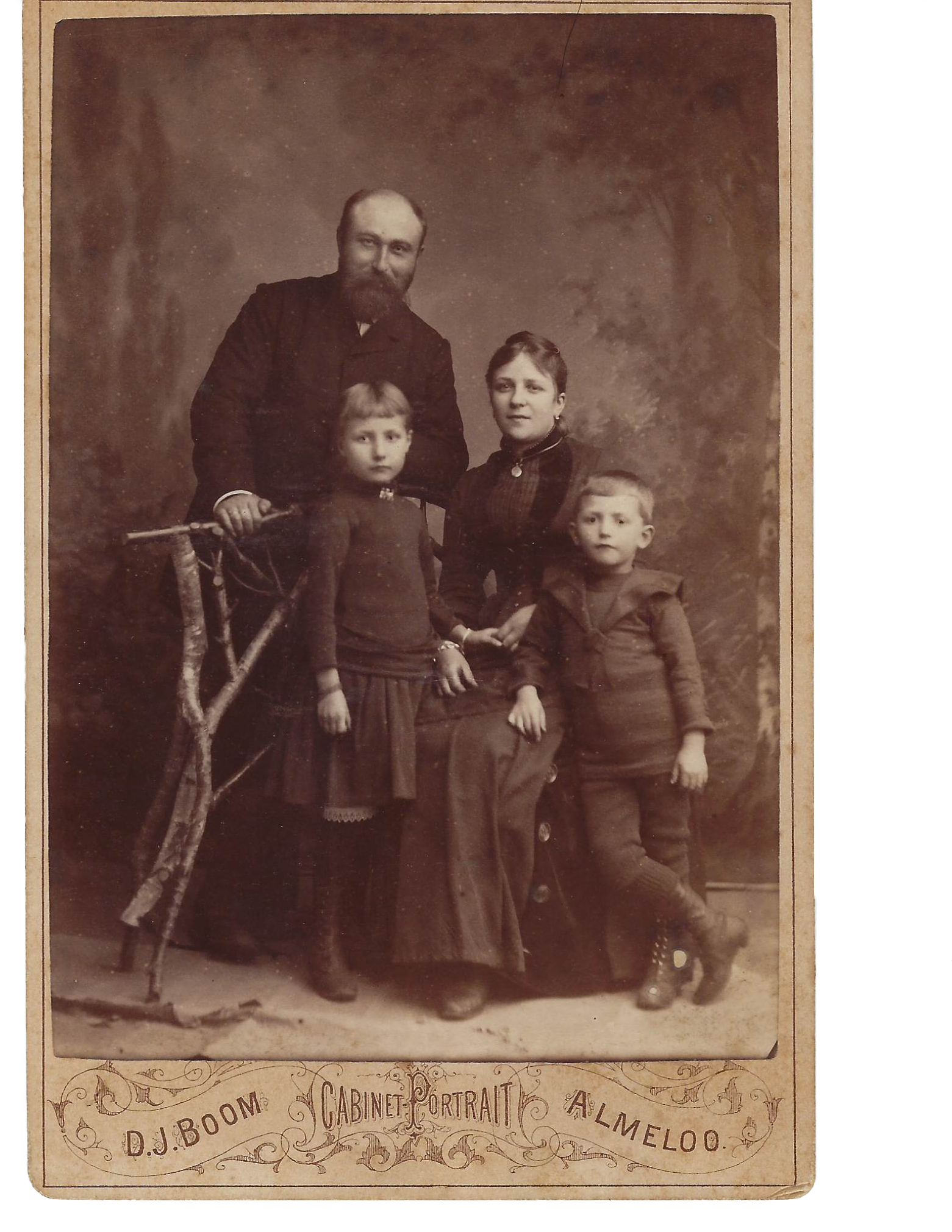 Herman Wisselink met zijn tweede echtgenote Hendrika Companjen en zijn twee oudste kinderen Dien en Willem, ca. 1885